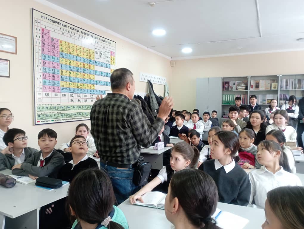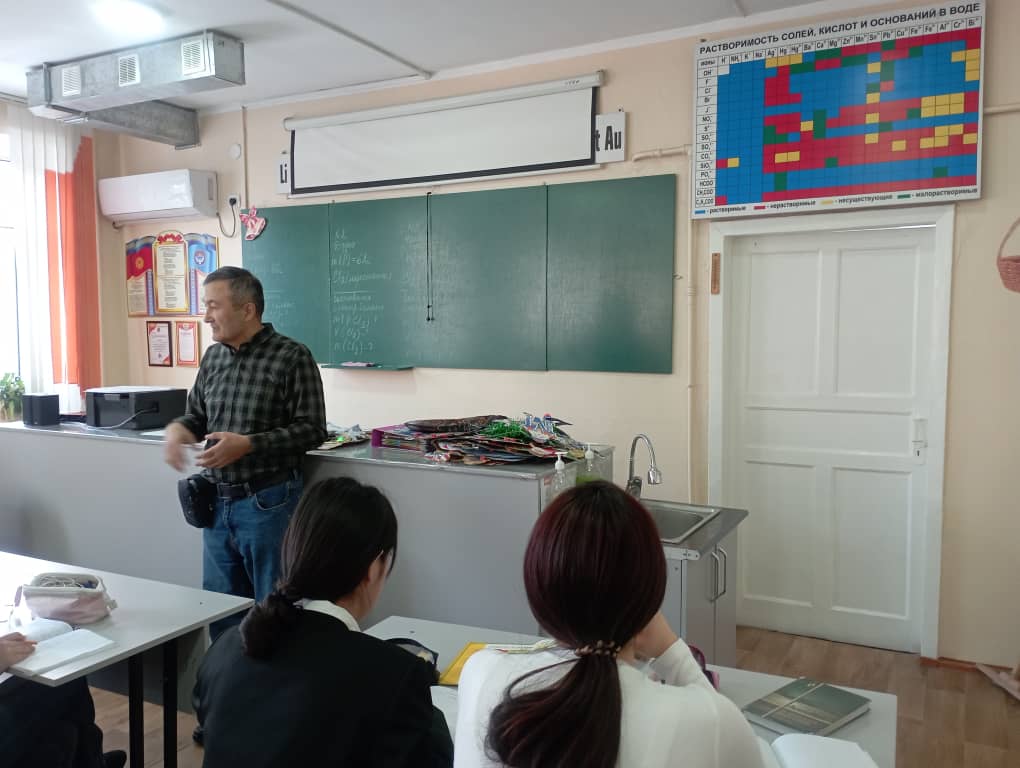 С лекционным материалом перед учащимися школы выступил врач ЦСМ 7 кабинета укрепления здоровья Шаршеналиев Эмиль Нусуртбекович,который рассказал ребятам про соблюдение принципов здорового образа жизни,о значении физической культуры, о правильном питании, о недопущении насилия и агрессии по отношению друг к другу,о хрупкости человеческой жизни, о добропорядочном отношении между одноклассниками и одношкольниками. Также врач затронул тему ранних половых отношений и о ранних браках. Ученики внимательно слушали врача и задавали Эмилю Нусуртбековичу интересующие их вопросы.