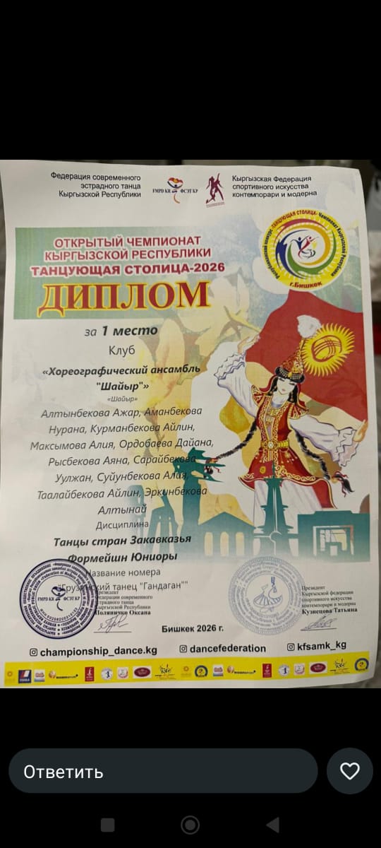 28-29 марта 2026 года в Бишкеке в Национальном центре детей и юношества (НЦДЮ) «Сейтек» прошёл открытый чемпионат Кыргызской Республики «Танцующая столица».